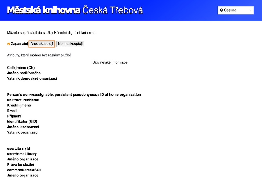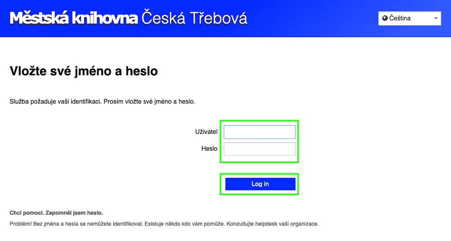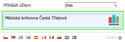Stačí kliknout na "Přihlásit", z nabídky knihoven vybrat Městskou knihovnu Česká Třebová a zadat své údaje pro přístup do konta. Postupujte podle kroků na obrázcích níže.