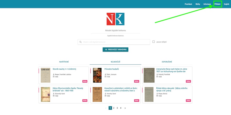 Od října 2020 mají naši čtenáři s platnou registrací k dispozici přístup do Národní digitální knihovny. Konkrétně k dílům: